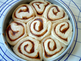 For most of my childhood, I admit that I loved baking those cinnamon rolls that come in a cardboard tube. You know...the one with pudgy dough boy on the label. As a young and aspiring baker, I'd unroll that tube, searching for that prized frosting. Of course, I had to dip my fingers to grab a sneak preview of that sugary goodness. Heaven! As a skinny kid, I could eat almost eat a whole pan of these. Only, I have two brothers who are older and bigger than their one and only sister--so I never got a chance to test that theory.